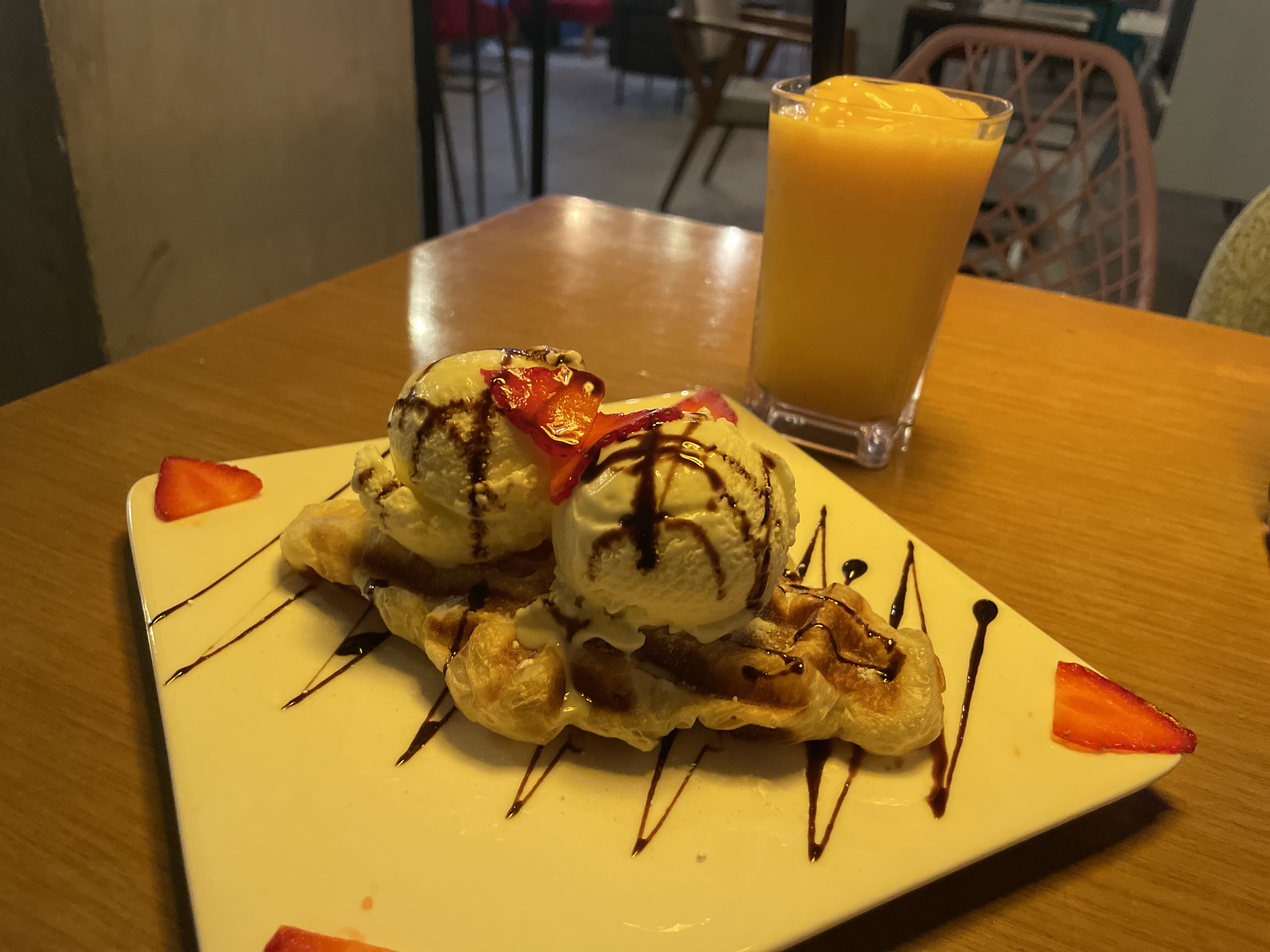 처음에는 비주얼 보고 너무 예뻐서 놀라고, 그 다음에는 망고주스가 너무 맛있어서 놀랐어요.