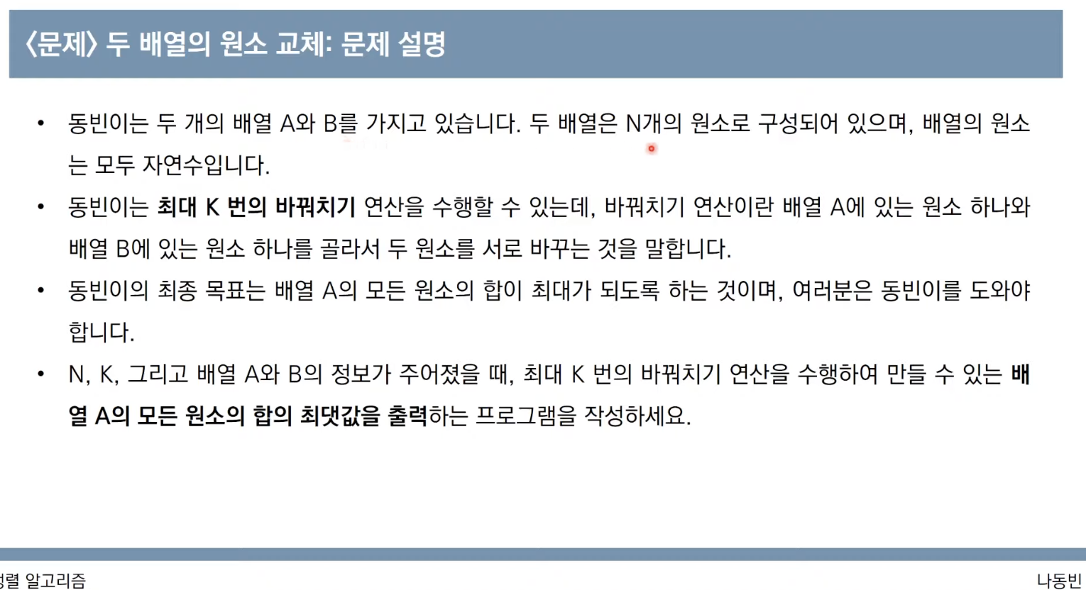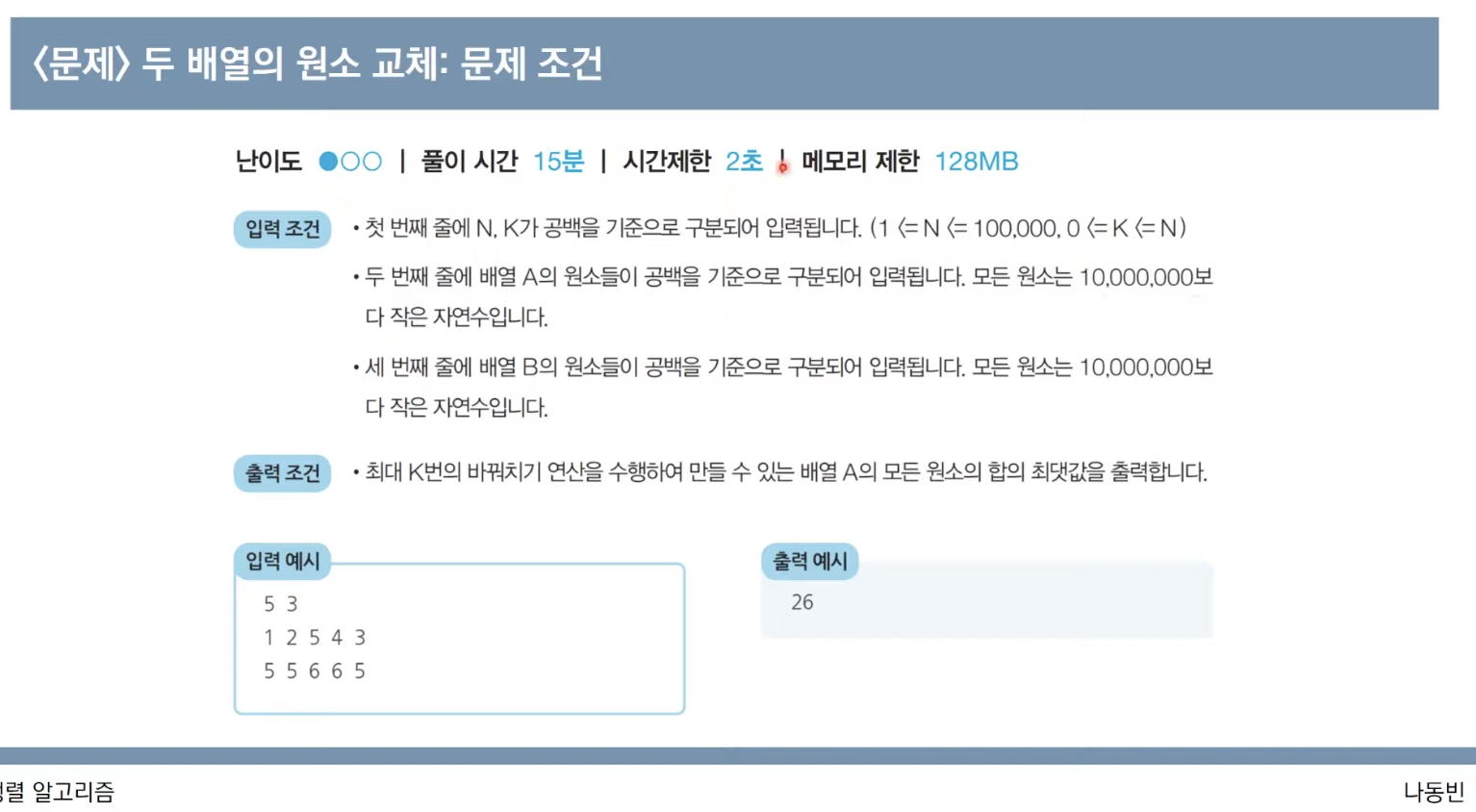 # 첫 번재 인덱스부터 확인하며, 두 배열의 원소를 최대 k번 비교